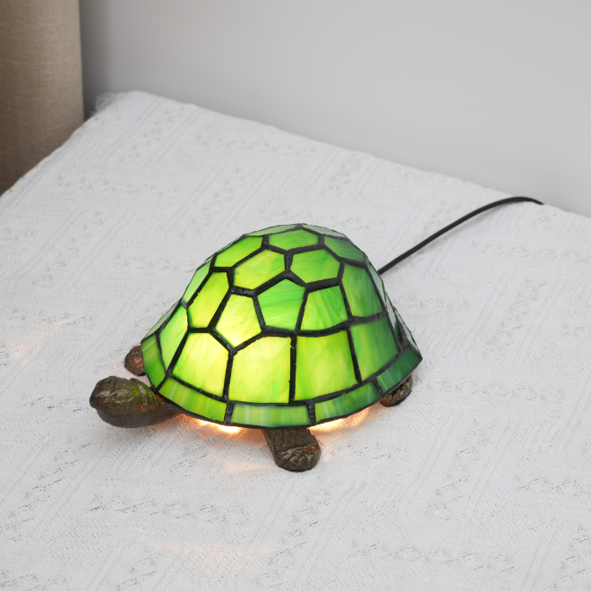 Product informationYou will receive 1 product.Color: GreenLamp Body Material: IronShade Material: Stained GlassSize: 21*10cmLight Source: LEDShade Shape: RoundItem Type: Turtle Table LampFeature: Cute