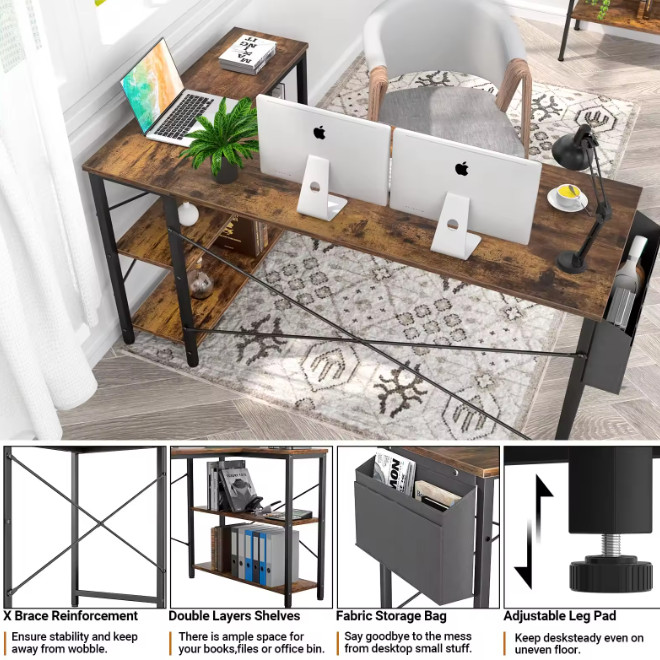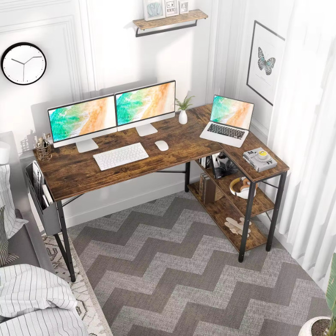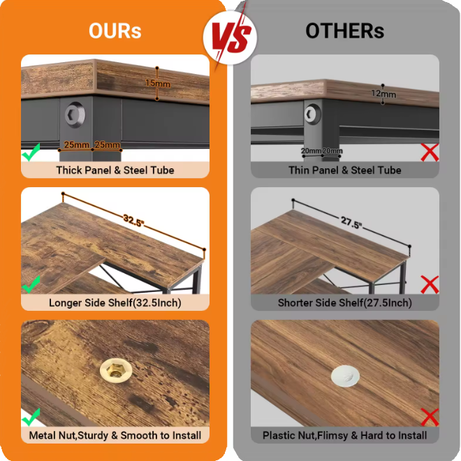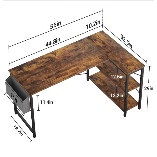 Product informationYou will receive 1 product.Color: BrownMaterial: Wood Board + Steel FrameSize: Shown as the pictureStyle: ModernUsage: StudyItem Type: L Shaped Computer DeskFeature: Waterproof, Anti-scratch, Easy to clean.