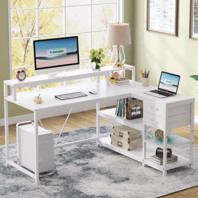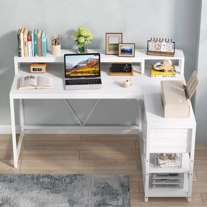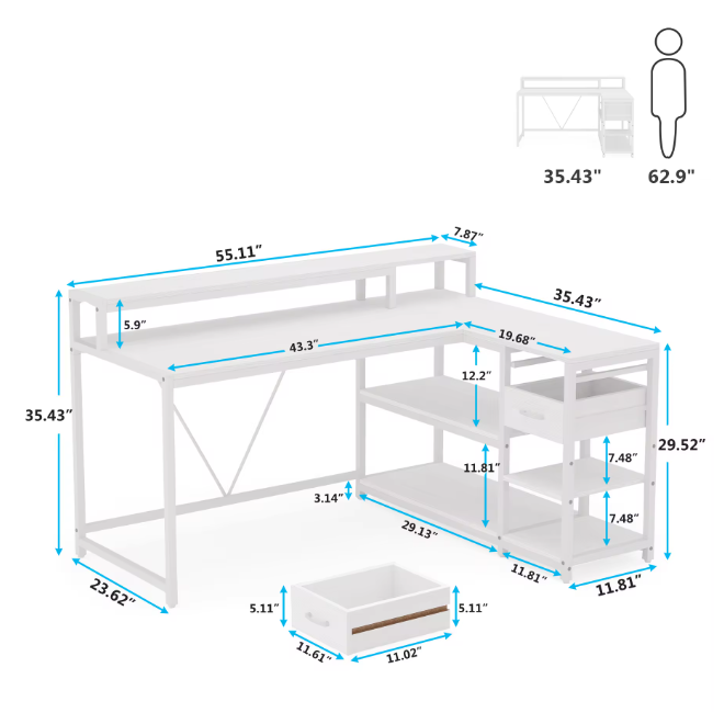 Product informationYou will receive 1 product.Color: WhiteMaterial: Wood Board + Steel FrameSize: 140*110*90 cmStyle: ModernUsage: Study, BedroomItem Type: Computer DeskFeature: Adjustable (height), Convertible, Revolving.