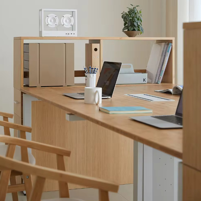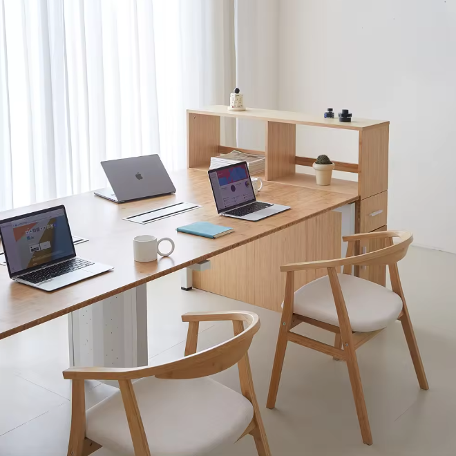 Product informationYou will receive 1 product.Color: Natural YellowMaterial: Wood + MetalSize: 1200*1200*750mm(H)Weight: 80kgStyle: ModernUsage: Home OfficeItem Type: Bamboo Office Desk SetFeature: Revolving, Eco-friendly.