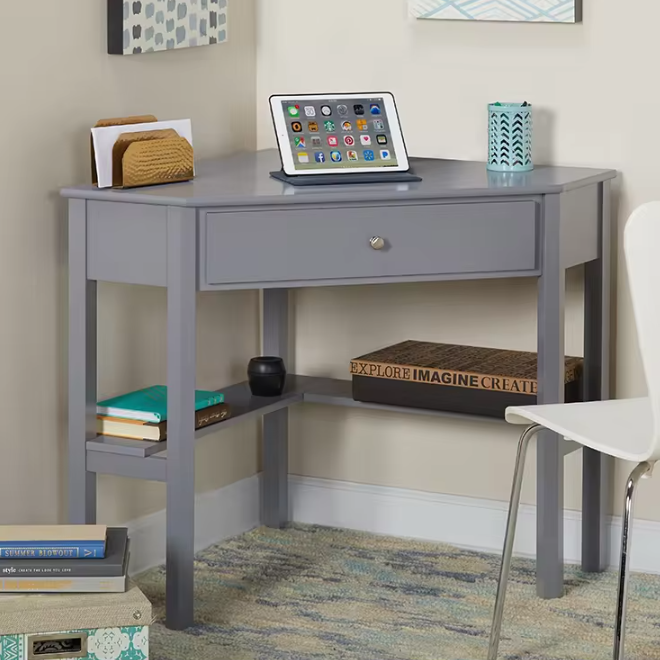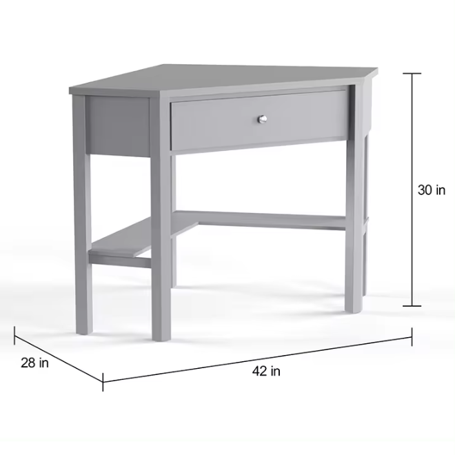 Product informationYou will receive 2 products (1 of each colour).Color: Brown, GreyMaterial: WoodSize: 42*30*28 InchesWeight: 44 poundsStyle: ModernUsage: HomeItem Type: Writing DesksFeature: At the corner.
