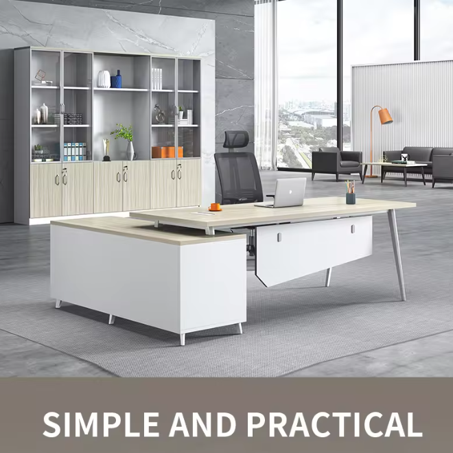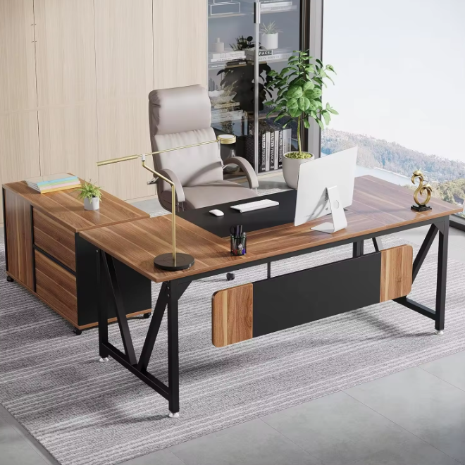 Steel Wooden Office L Shape Executive Desks With Drawer